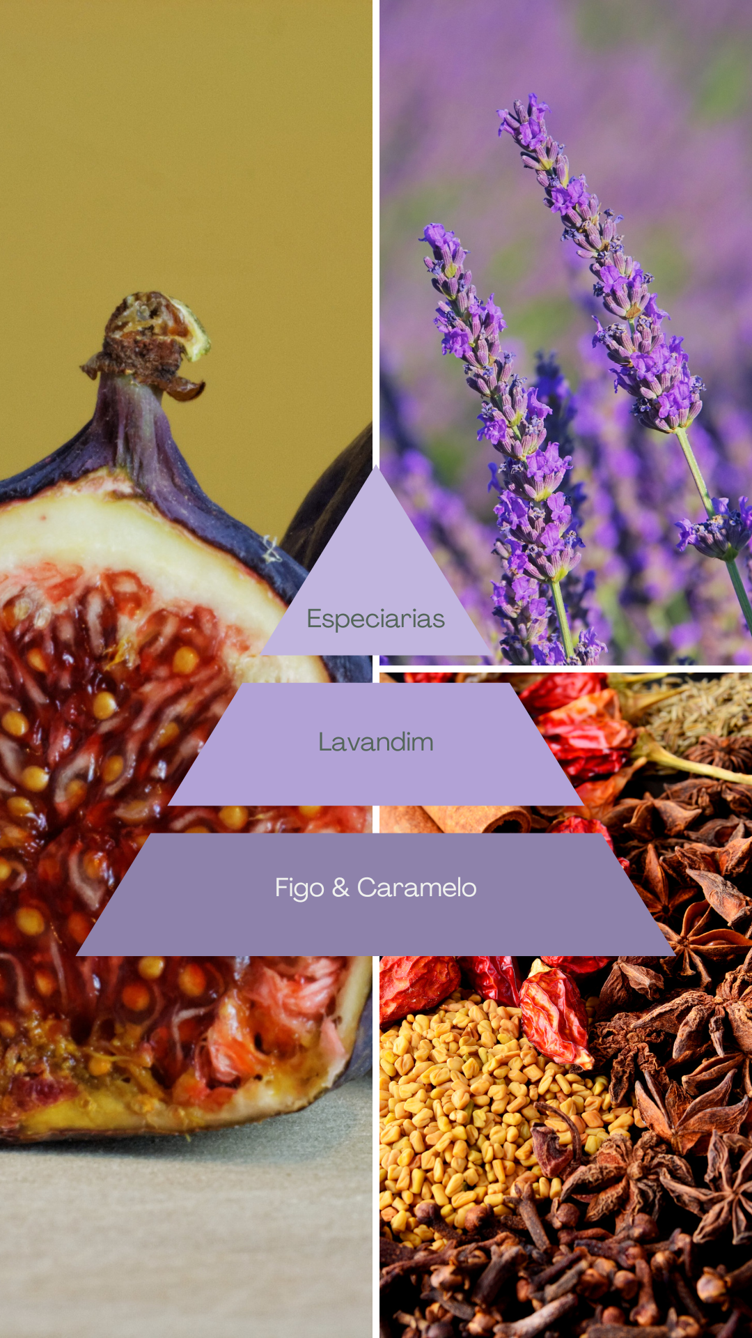 Figueira Dourada é uma fragrância que acolhe com elegância. O figo caramelado traz um dulçor cremoso e inesperado, equilibrado pelo toque herbal do lavandim e pela profundidade das madeiras nobres. Um fundo de especiarias aquece a composição, criando uma sensação de conforto refinado — como a luz dourada do sol filtrando pelas folhas ao final do dia.